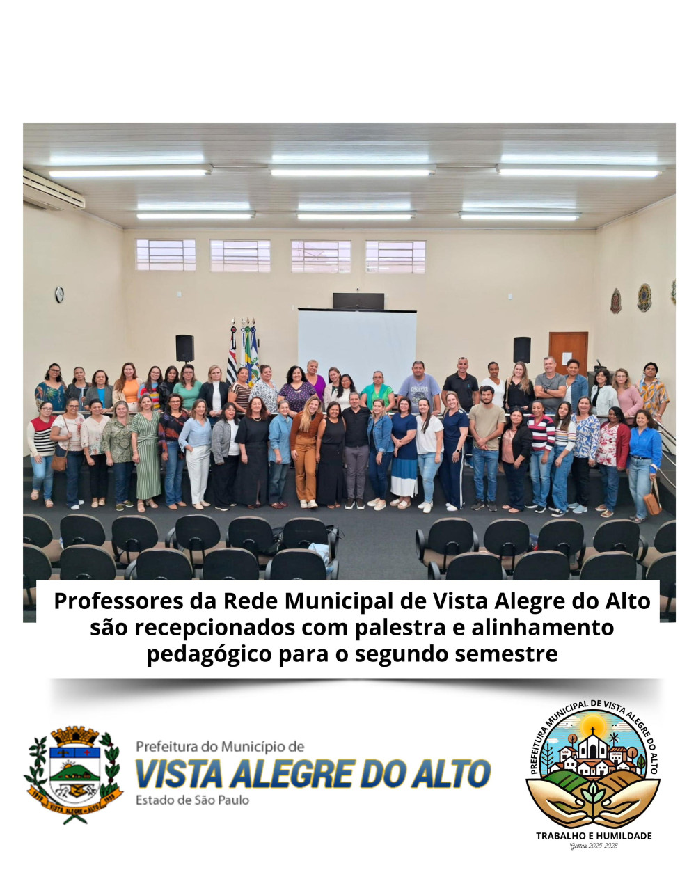 Na manhã desta segunda-feira, 29, os professores da Rede Municipal de Ensino de Vista Alegre do Alto participaram de um momento especial de recepção e formação para marcar o início das atividades do segundo semestre letivo.