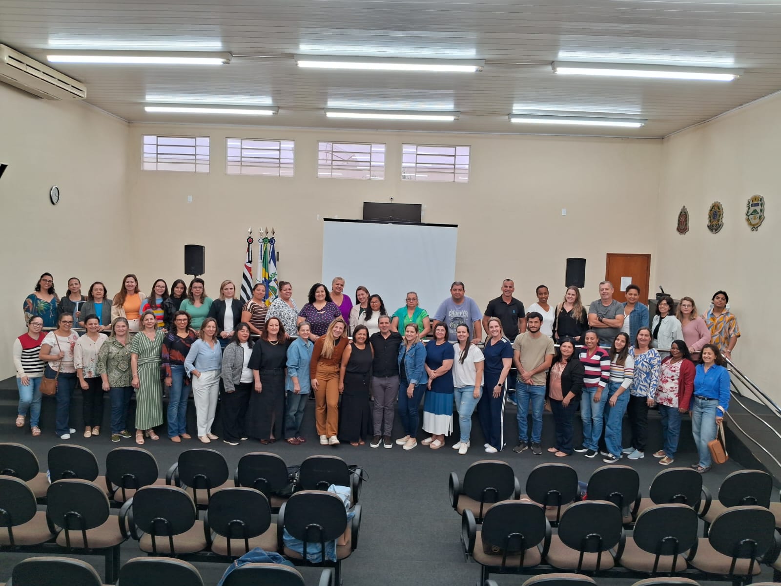 Na sequência, os educadores se dirigiram à Câmara Municipal, onde foram acolhidos com um café da manhã às 8h30. Às 9h teve início a palestra "A Produção de Sentidos no Ambiente Escolar", conduzida pelo renomado professor e palestrante Cléber Fabiano, diretor da FATUM Educação e Editora.