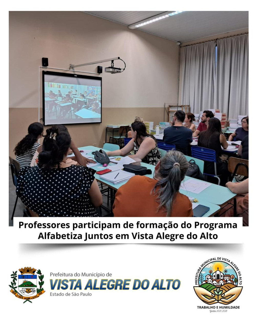 Educadores da rede municipal participaram de mais uma etapa do Programa Alfabetiza Juntos, realizada na escola E.M.E.I.E.F. “Irineu Julião”, em Vista Alegre do Alto. A formação envolveu professores dos 1º, 2º, 3º, 4º e 5º anos do ensino fundamental.