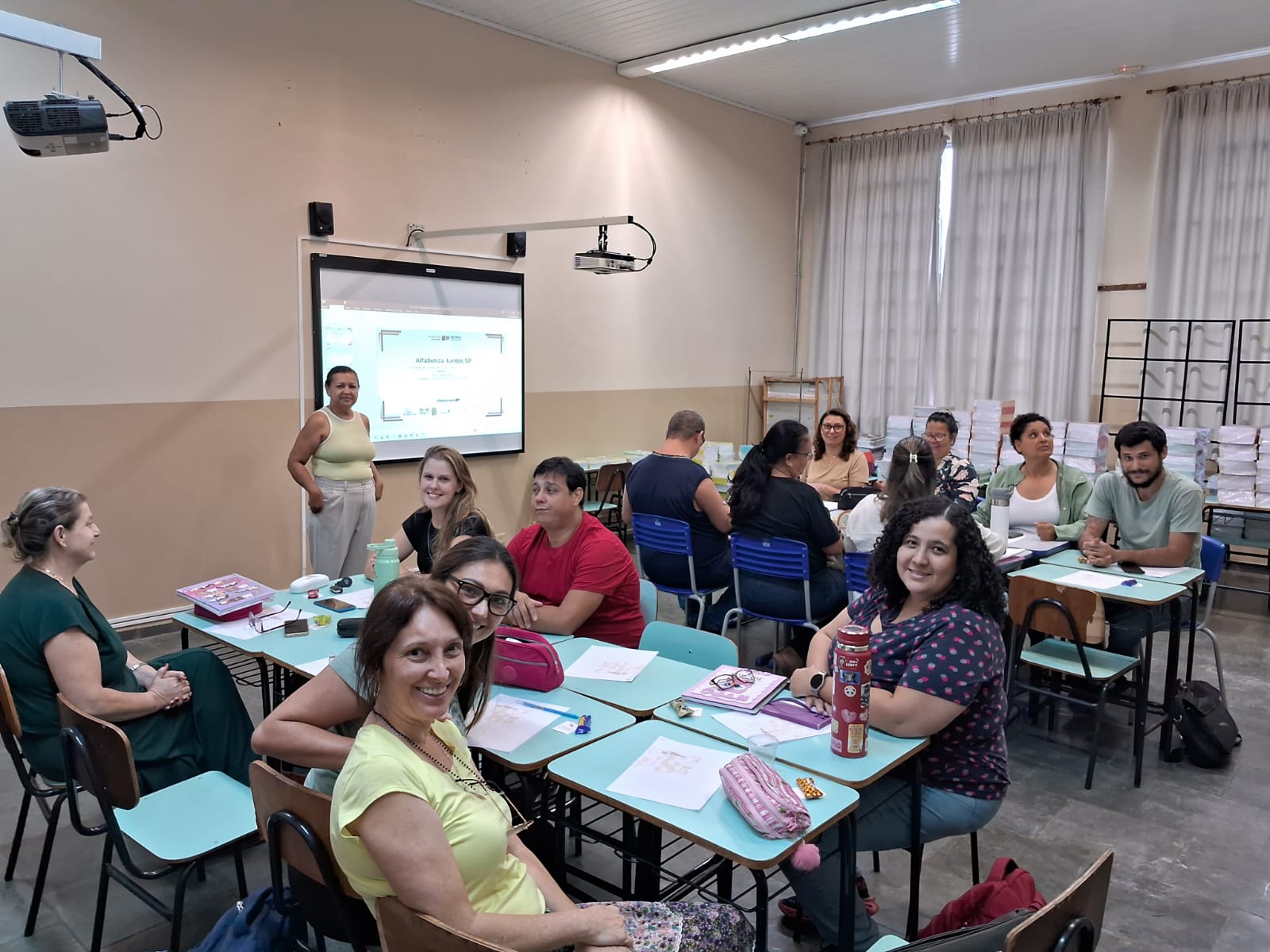 Durante a atividade, os profissionais tiveram acesso a orientações e estratégias que contribuem para o fortalecimento da aprendizagem, com foco no desenvolvimento das habilidades de leitura e escrita nos anos iniciais.