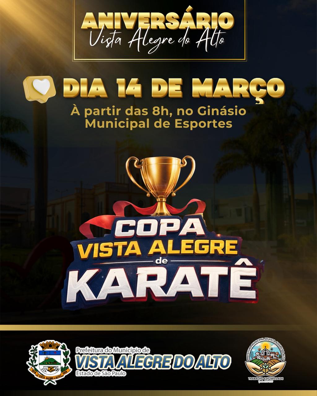 A abertura oficial das comemorações será no dia 14 de março, com a realização da Copa Vista Alegre de Karatê. O evento acontece a partir das 8h, no Ginásio de Esportes, e valerá pontos para o Ranking 2026, reforçando sua importância no calendário da modalidade. A competição deve reunir atletas de diversas categorias, promovendo integração, disciplina e incentivo ao esporte.