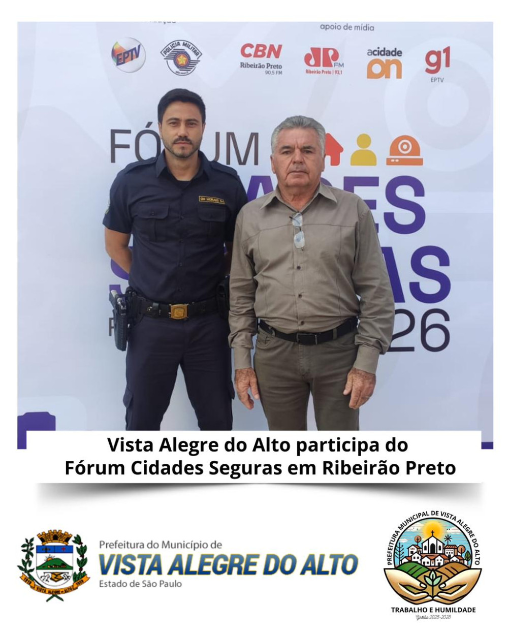 A Prefeitura de Vista Alegre do Alto marcou presença nesta quinta-feira, 23 de abril, no Fórum Cidades Seguras, realizado em Ribeirão Preto. O evento reuniu representantes de 93 municípios da região para debater estratégias, compartilhar experiências e fortalecer ações voltadas à segurança pública e à prevenção da criminalidade.
