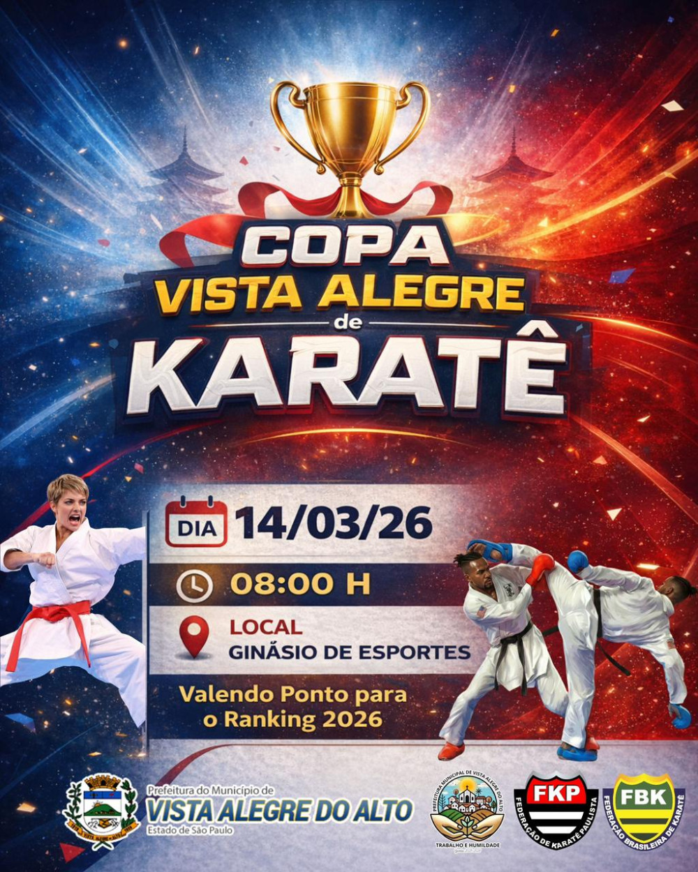 A Prefeitura de Vista Alegre do Alto realizará, no dia 14 de março de 2026, a 1ª Copa Vista Alegre de Karatê, evento que promete reunir atletas da região em uma grande celebração do esporte. A competição terá início às 8h, no Ginásio de Esportes do município.